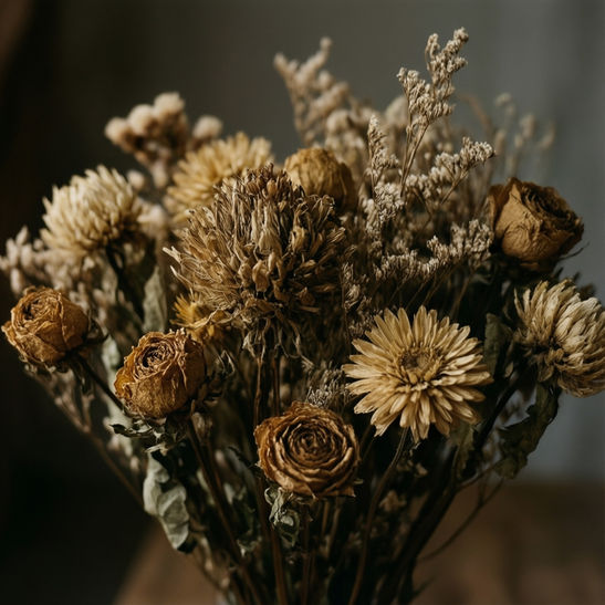 Мистецька декоративна композиція з природно висушених квітів. Ця композиція пропонує довготривалу красу та дотик рустикальної елегантності, створена вручну для принесення органічного шарму будь-якому простору.